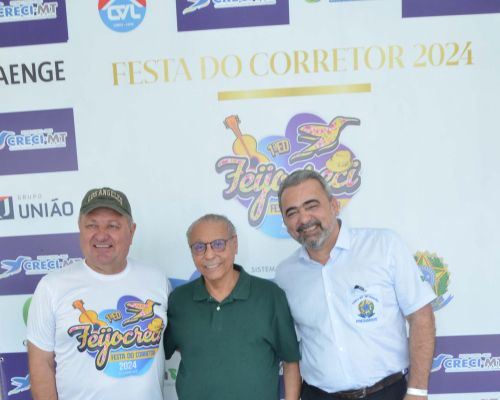 A primeira Feijocreci, realizada em Cuiabá em 2024, foi um evento em comemoração ao Dia do Corretor. Contou com uma deliciosa feijoada, DJ, música ao vivo e a presença de todos os conselheiros do CRECI-MT, além de Júlio Campos, Deputado Estadual de Mato Grosso, Wellington Fagundes, Senador, e o ex-deputado João Batista. O evento foi organizado pelo CRECI-MT, através do presidente Claudecir Conttreira. (fotos geral do evento)