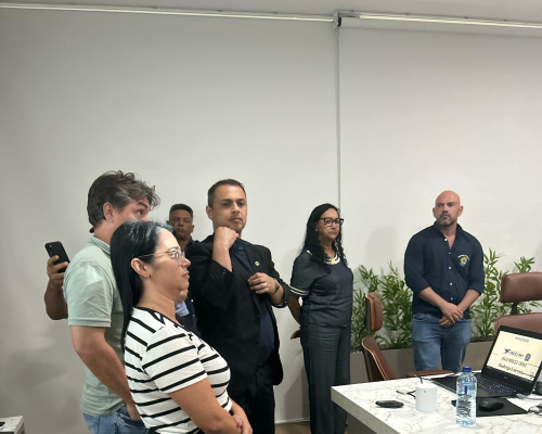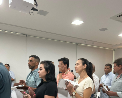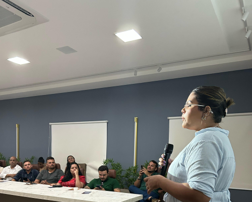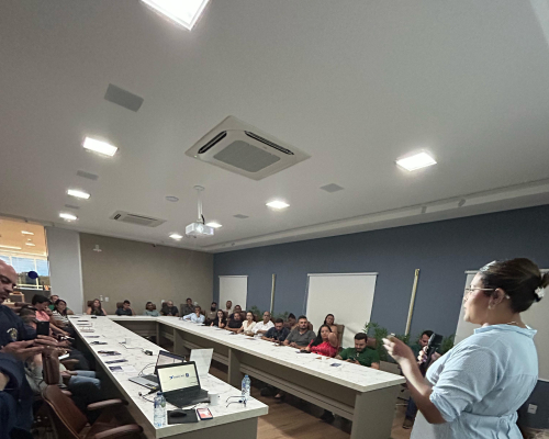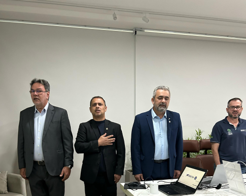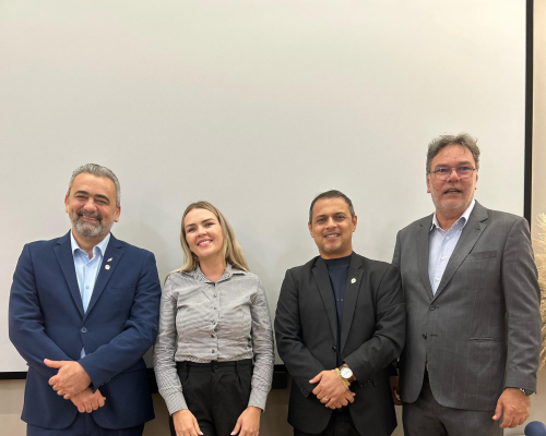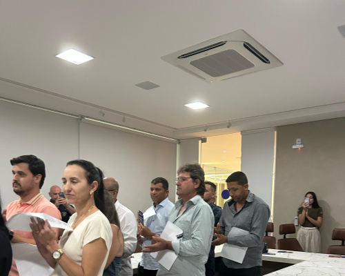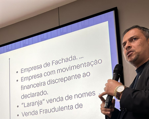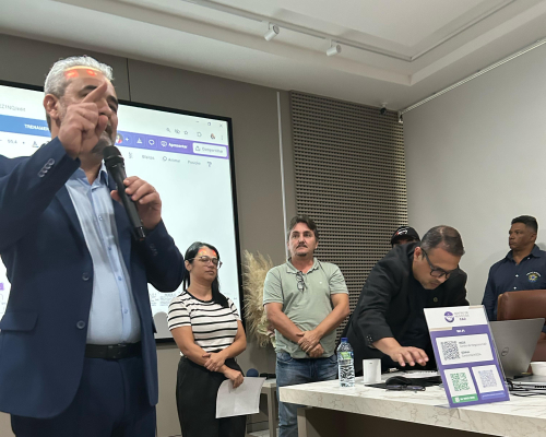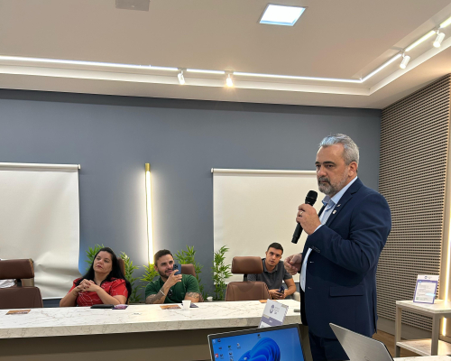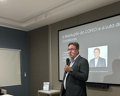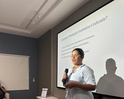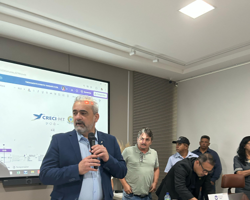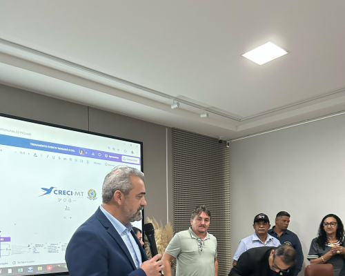 Presidente do CRECI-MT, Claudecir falou sobre a importância da união entre os corretores, fiscalização e ações realizadas pelo Crecimt Patrícia guarim representou a converge resolve, falando sobre câmara de arbitragem explicando como funciona, desde do auxílio a informação a conciliação.